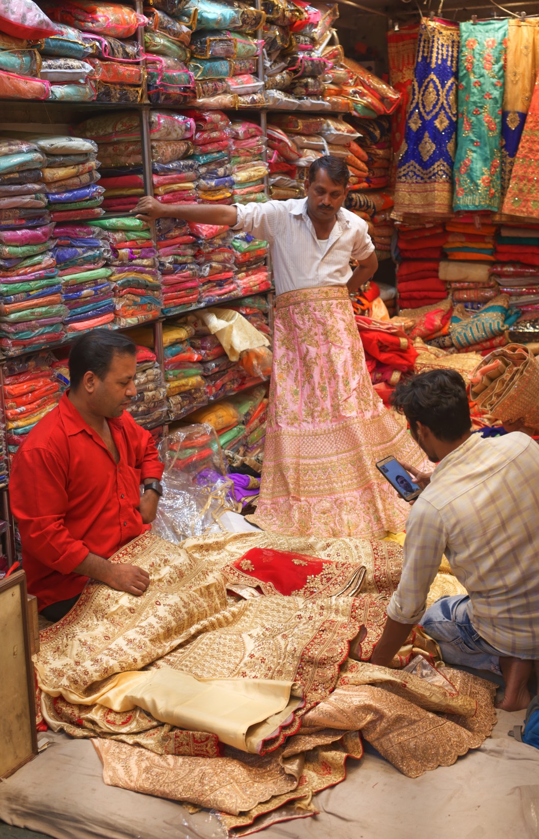 Showing material to others via mobile phone, special dresses for Diwali perhaps?