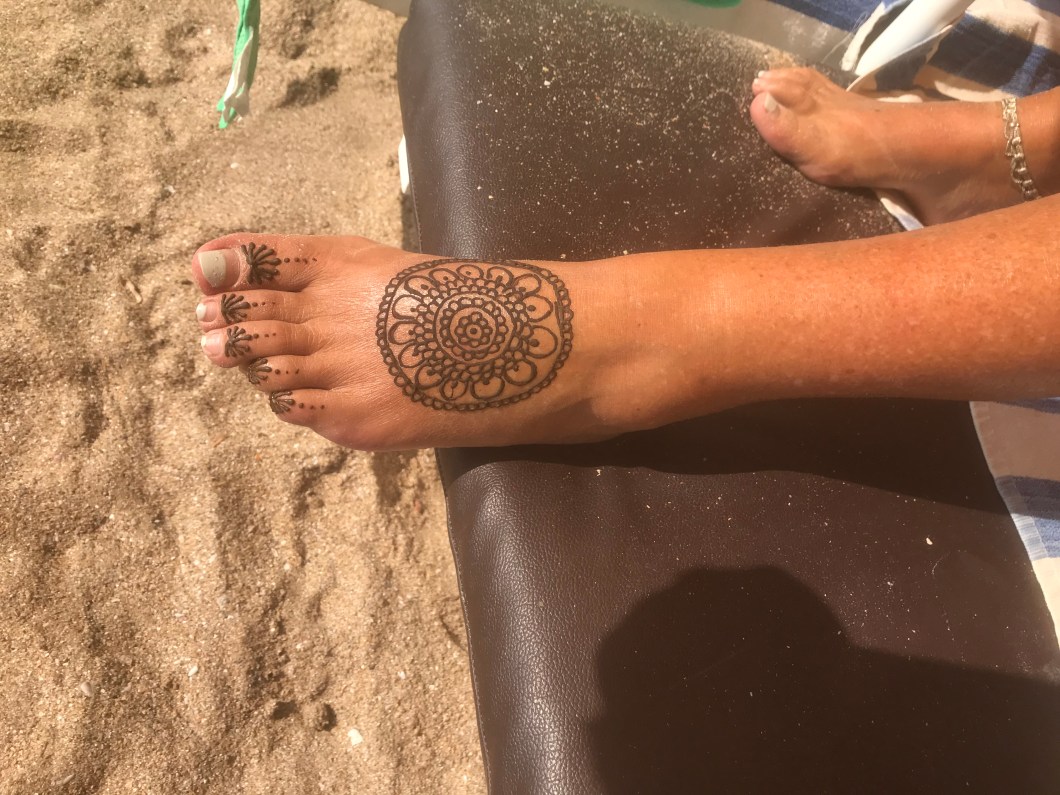 A Henna Mandala design from one of the ladies on the beach, there is plenty of opportunity to buy some things from your sunbed!