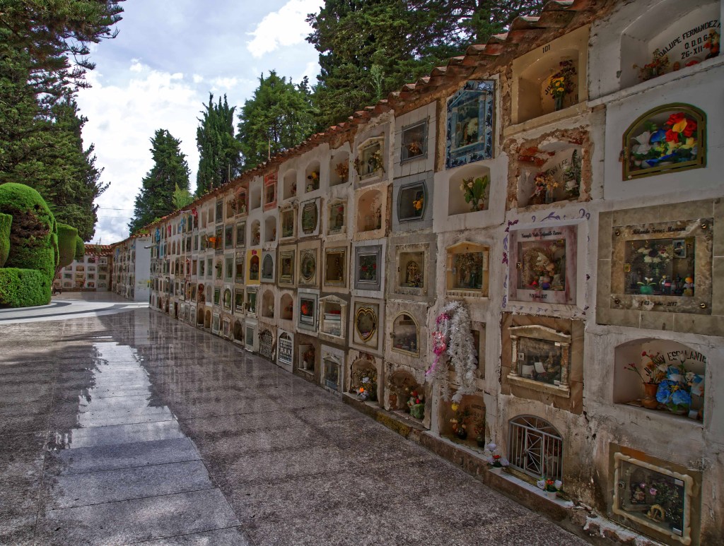 The cemetery has some headstones but most of the tombs are set into the walls.