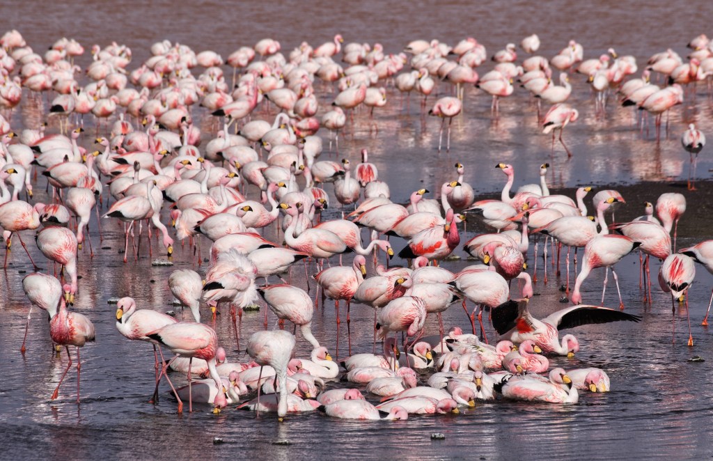 As we travelled through the most amazing, lunar like, mountain passes in the Eduardo Avarua national park, we passed a number of coloured lagoons, littered with literally thousands of flamingos.