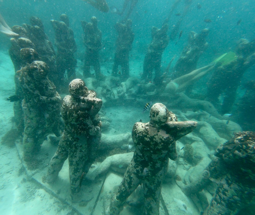 Close to Gili Meno is a wonderful underwater sculpture created by the British born artist Jason deCaires Taylor, who has created underwater sculptures that develop into artificial coral reefs across a number of international locations.