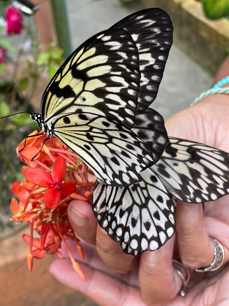 Next stop was a butterfly enclosure, we saw some beautiful butterflies and this couple were, er a bit connected at the time!