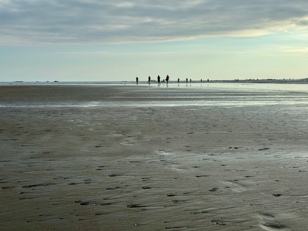 Here a group have made it to distant rocks as sunset approaches. Its around 20 mins walk along the sandbank but longer if going earlier or later when wading through water.