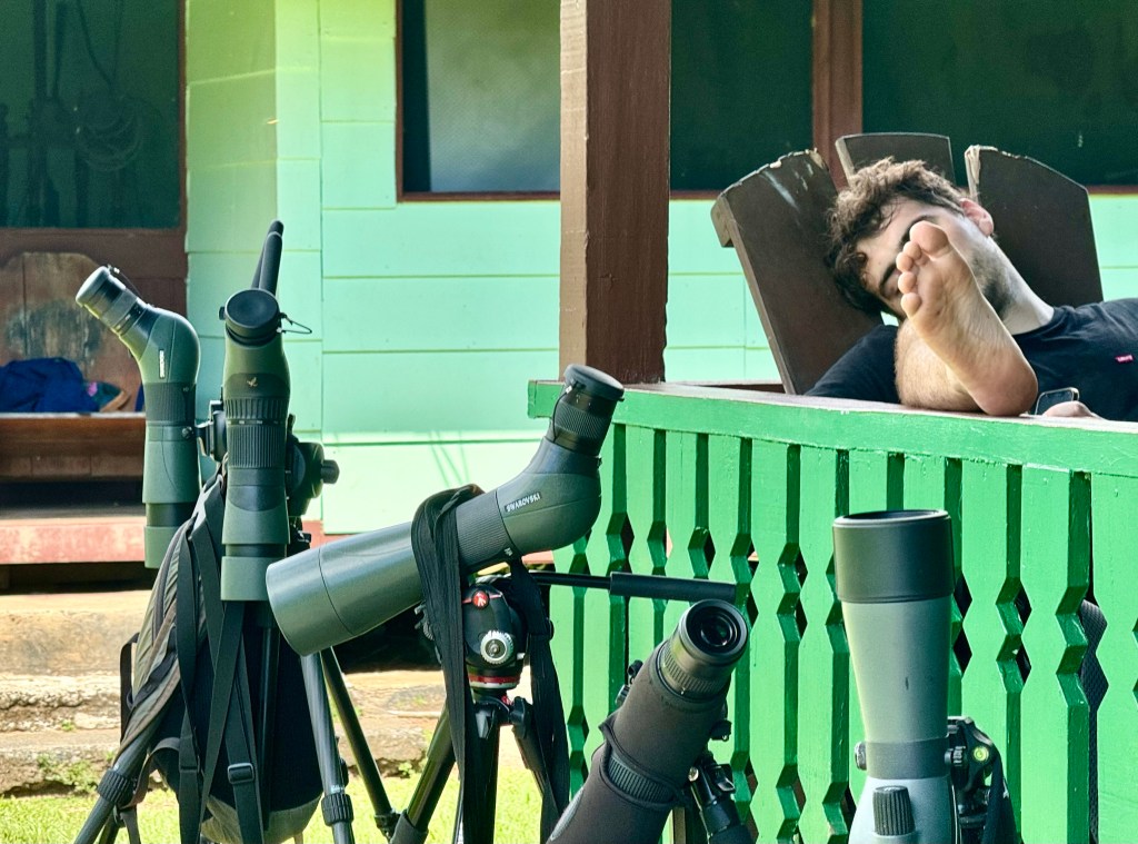 Below is a row of the spotter scopes the guides carry round. You get to look through the scope and they also use them to take photos for the group.