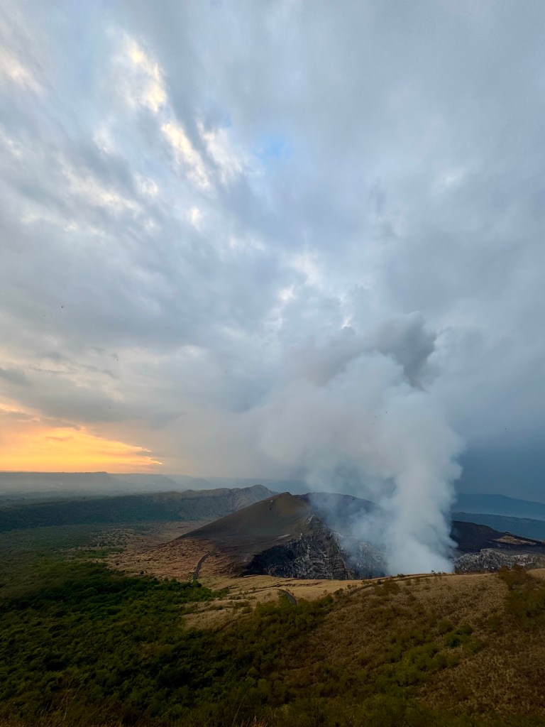 As the sun starts to set, the active crater reveals its hot underbelly, with visitors surrounding the walled edges of the viewing platforms trying to get the best view of it.