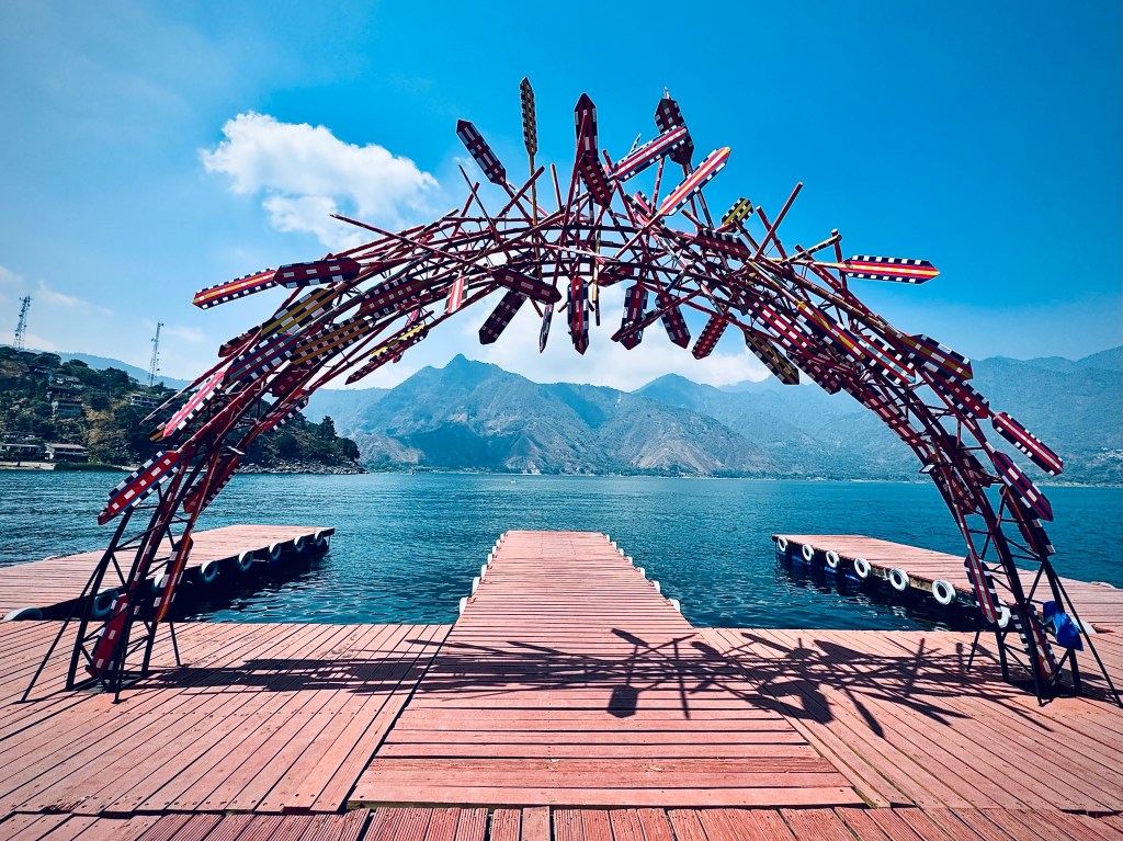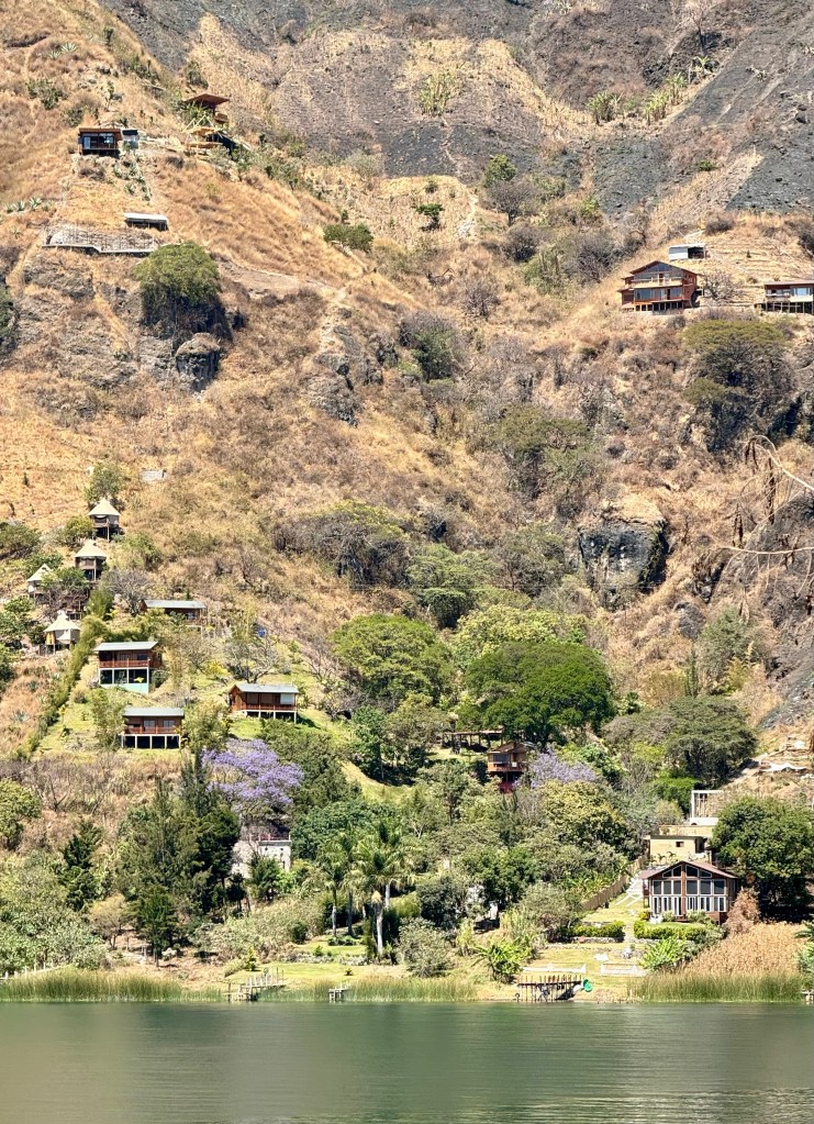 Above is the initial view of the lake from the boarding area for the water taxis. Surrounding the lake are the San Pedro, Tolimán and Atitlán volcanoes.