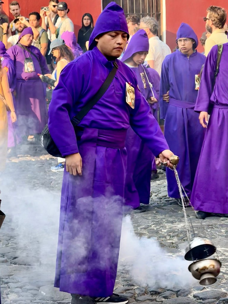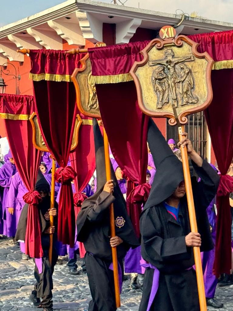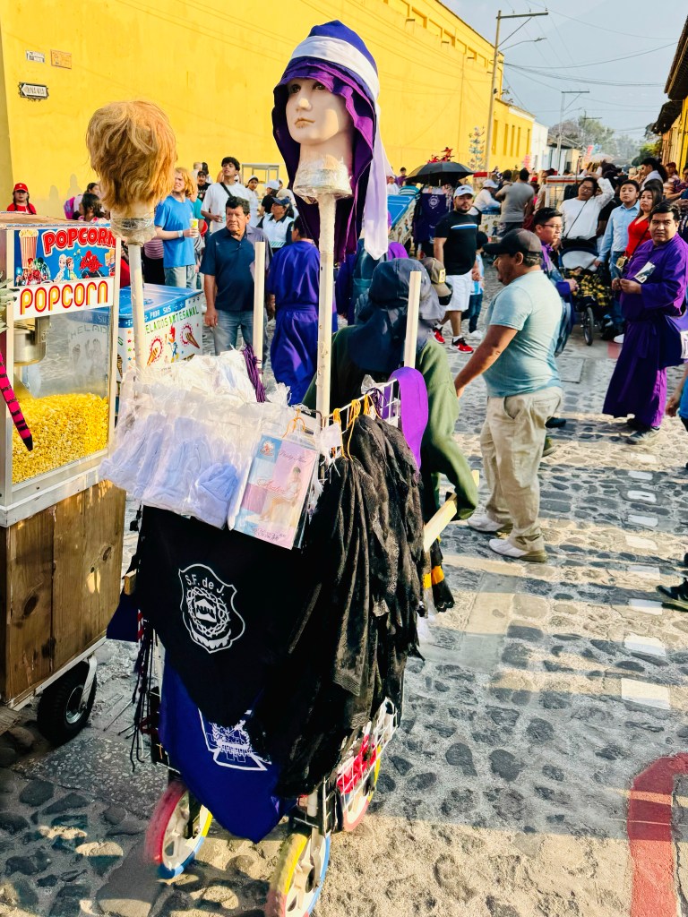 We soon realised that we had stumbled across a pre Easter procession, a superb, near biblical scale procession through the old streets of Antigua.