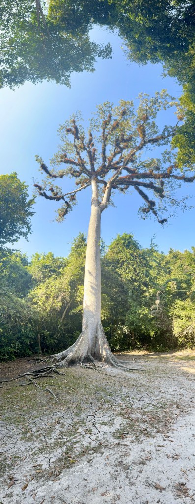 Above, an old Ceiba tree, thought by the Maya to be sacred and represent the universe, the earth and the spirit world.