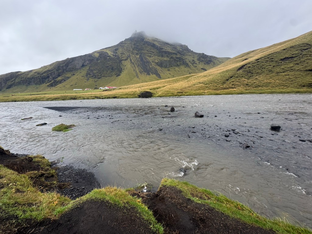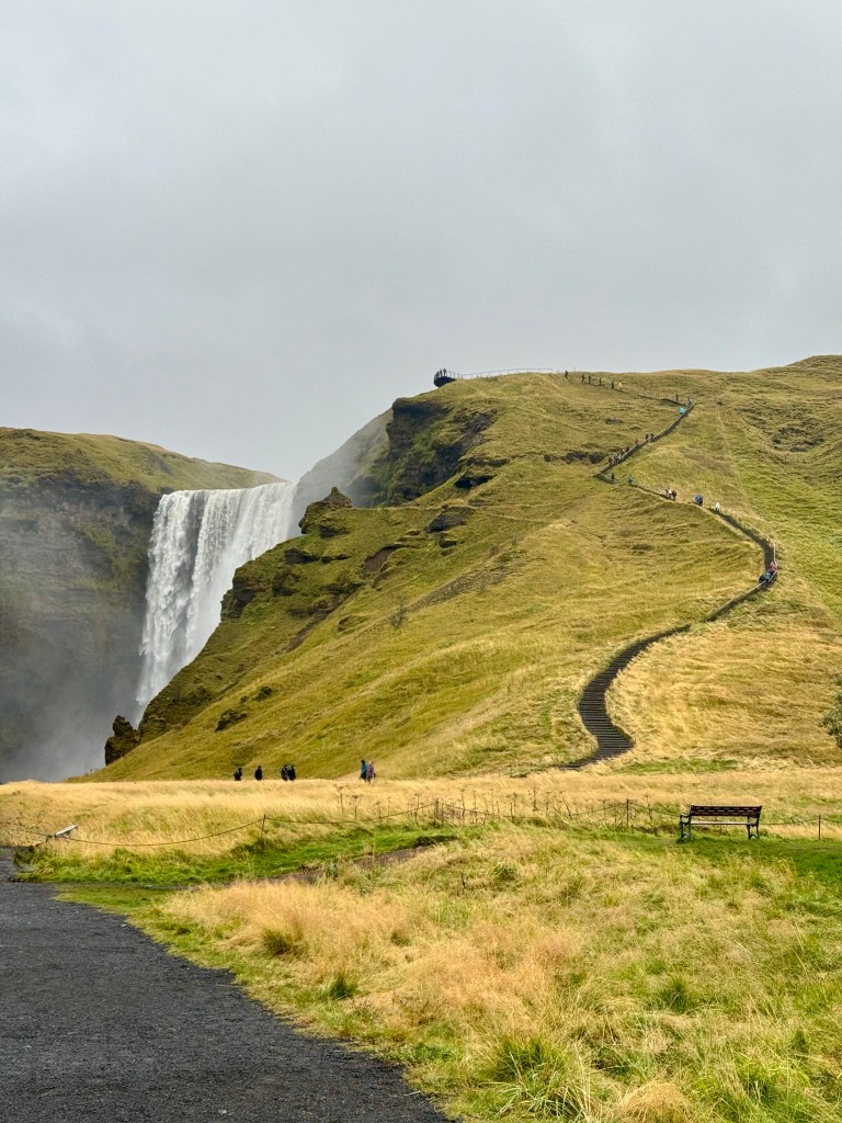 This beauty is called Skogafoss and it is really impressive. You can’t get too close to the bottom of the falls but there is a walkway to view it from above and see the river’s path to the edge.