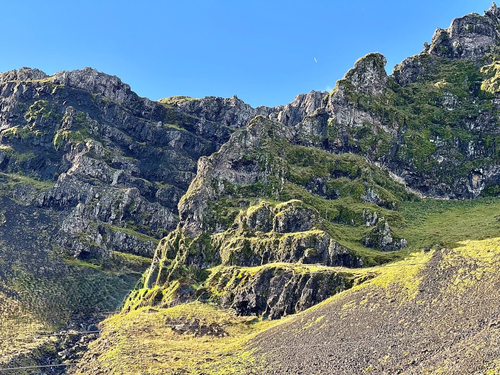 The mountain peaks are jagged and we were told that whist there are many mountains in Iceland, they are not easily climbed.