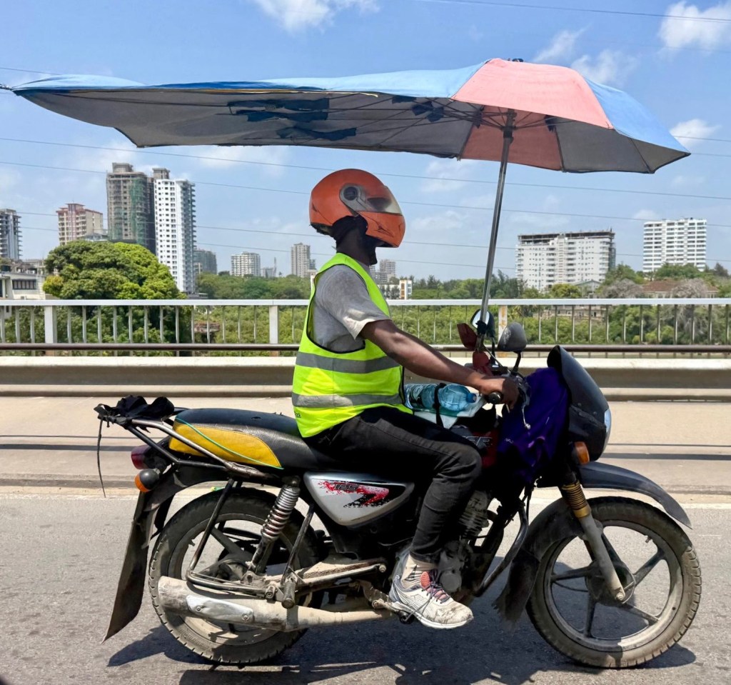 Kenyans seem to have no lack of ingenuity or invention. Due to the busy traffic on the roads, motorbike taxi’s are common.