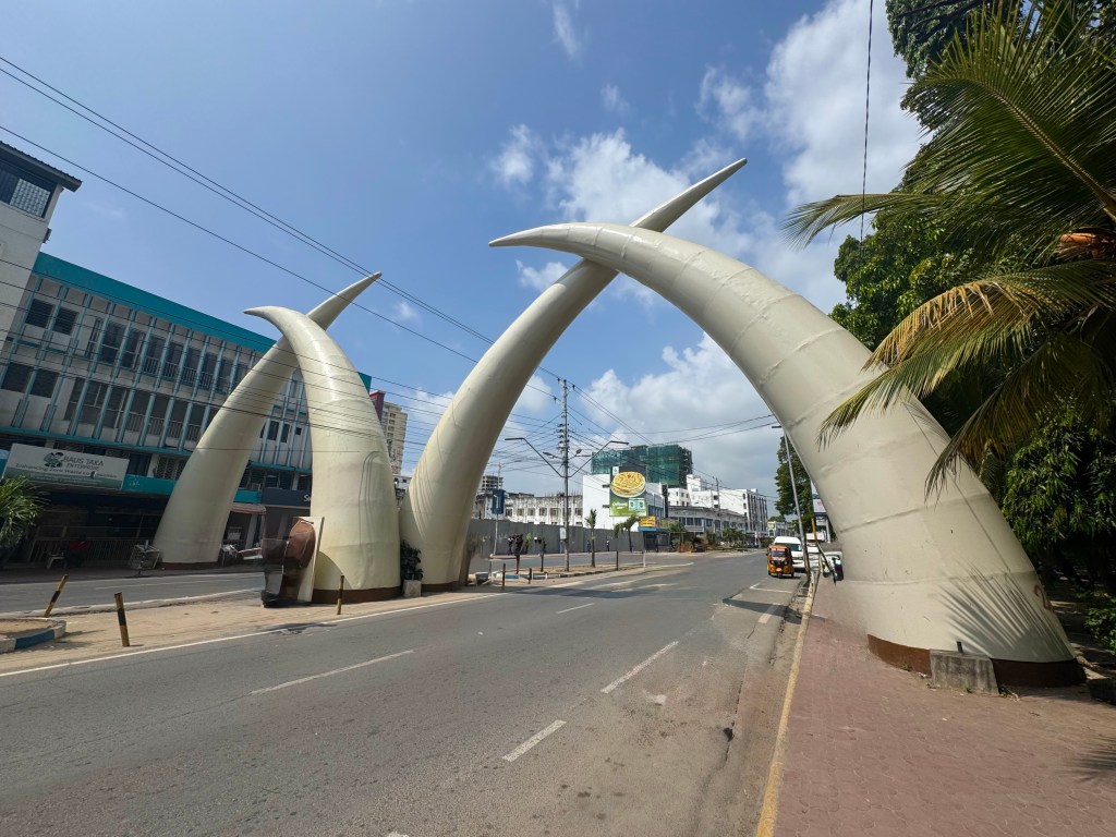 These Tusks can be seen in Moi avenue and welcome visitors to Mombasa. The aluminium replica Elephant tusks were built for a visit by Queen Elizabeth on her visit in 1952. They form an M shape for Mombasa.