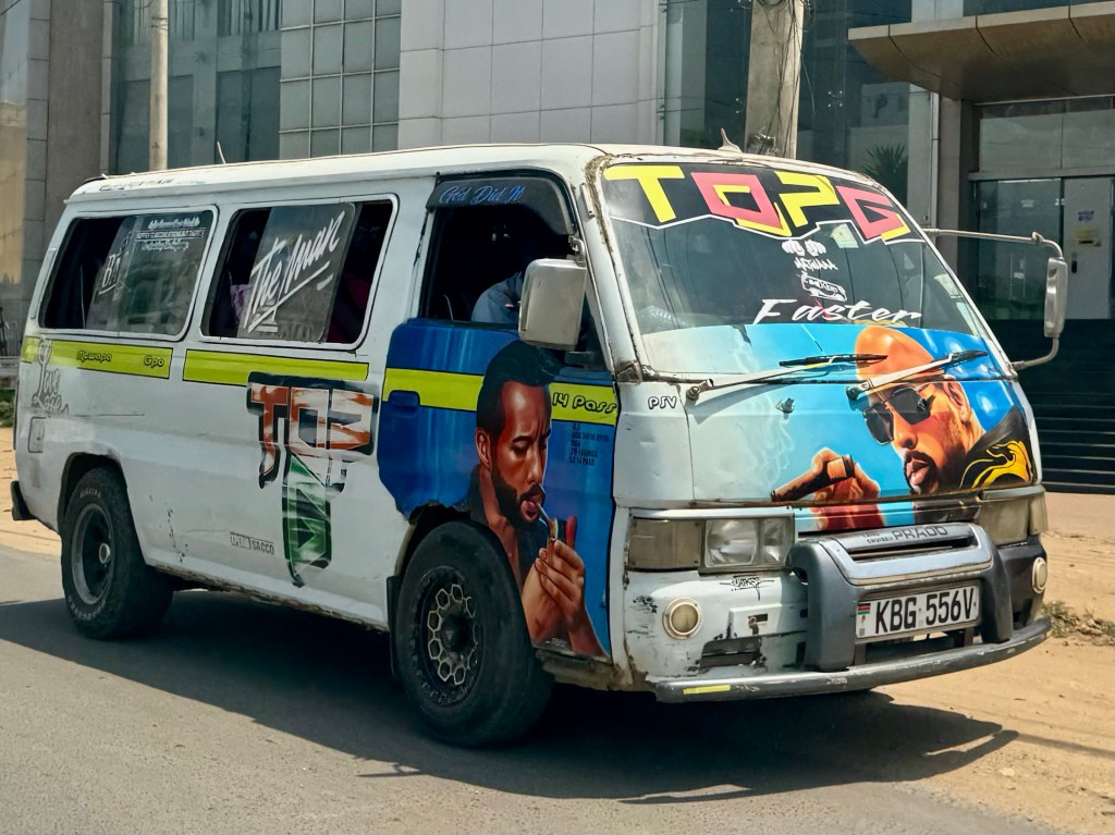 Matatu are pimped up minivans used as private transport vehicles. They often have very impressive custom bodywork, raised suspension, neon lights and high end music systems installed.
