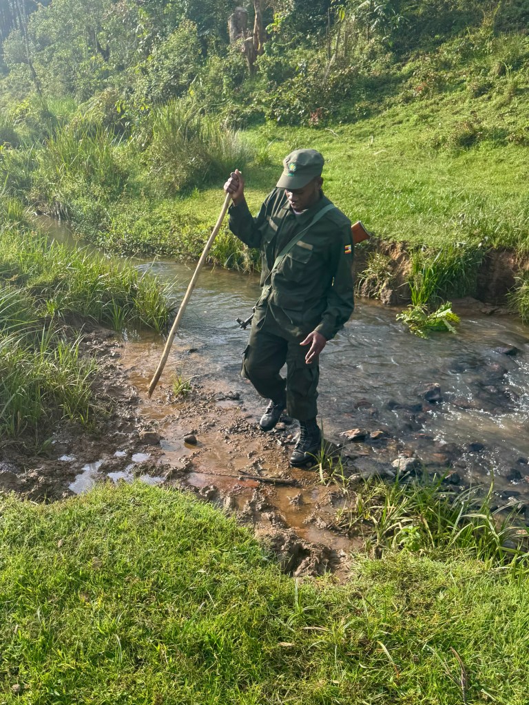 We spent about two hours treking down the valley and then into the forest before we were met by two Park Gorilla wardens, we knew we were close.