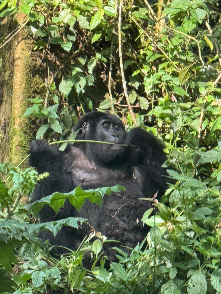 They led us to our initial sighting and we were immediately engrossed. The gorillas seemed very at ease, chomping away at the roots and leaves around them.