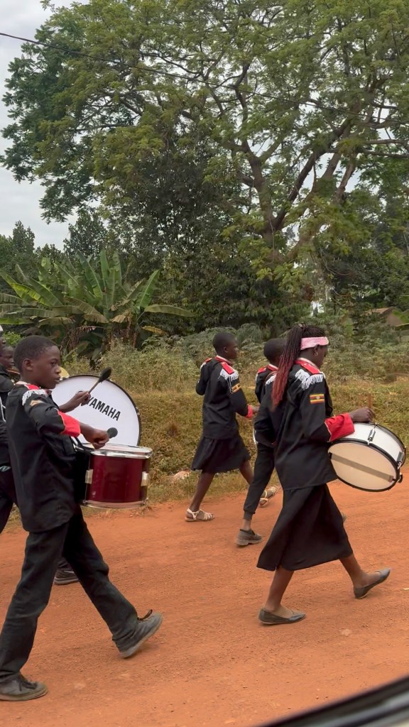 It was the last day of term, the schools organise a march through the village promoting the school to the community and to attract new entrants.