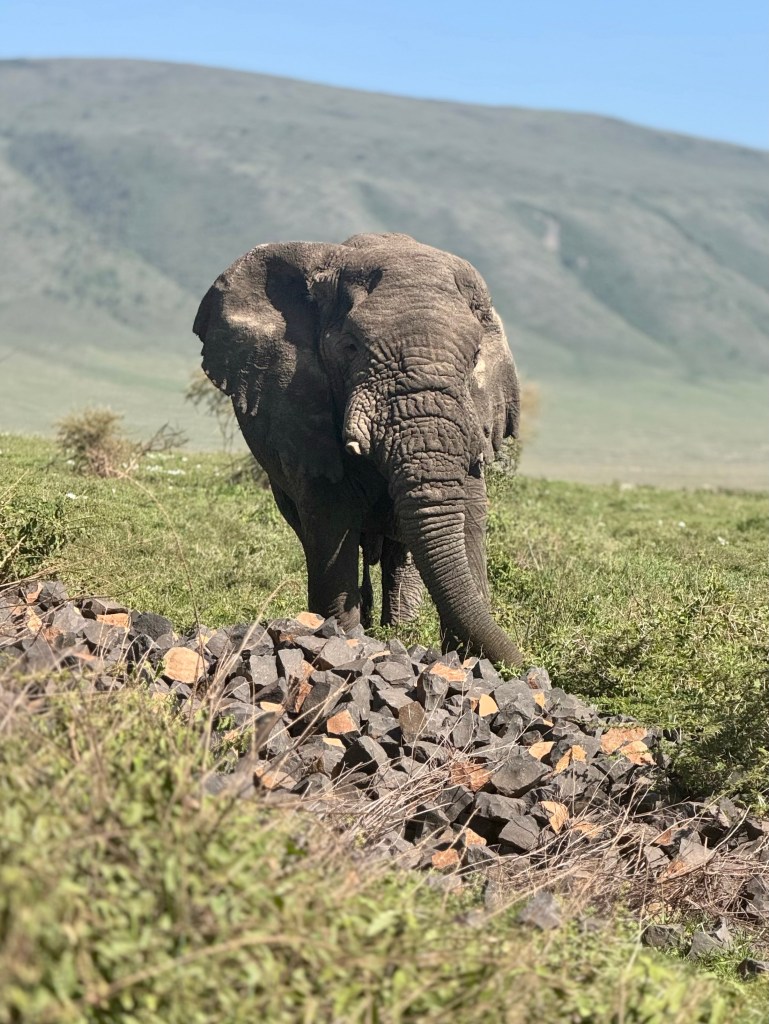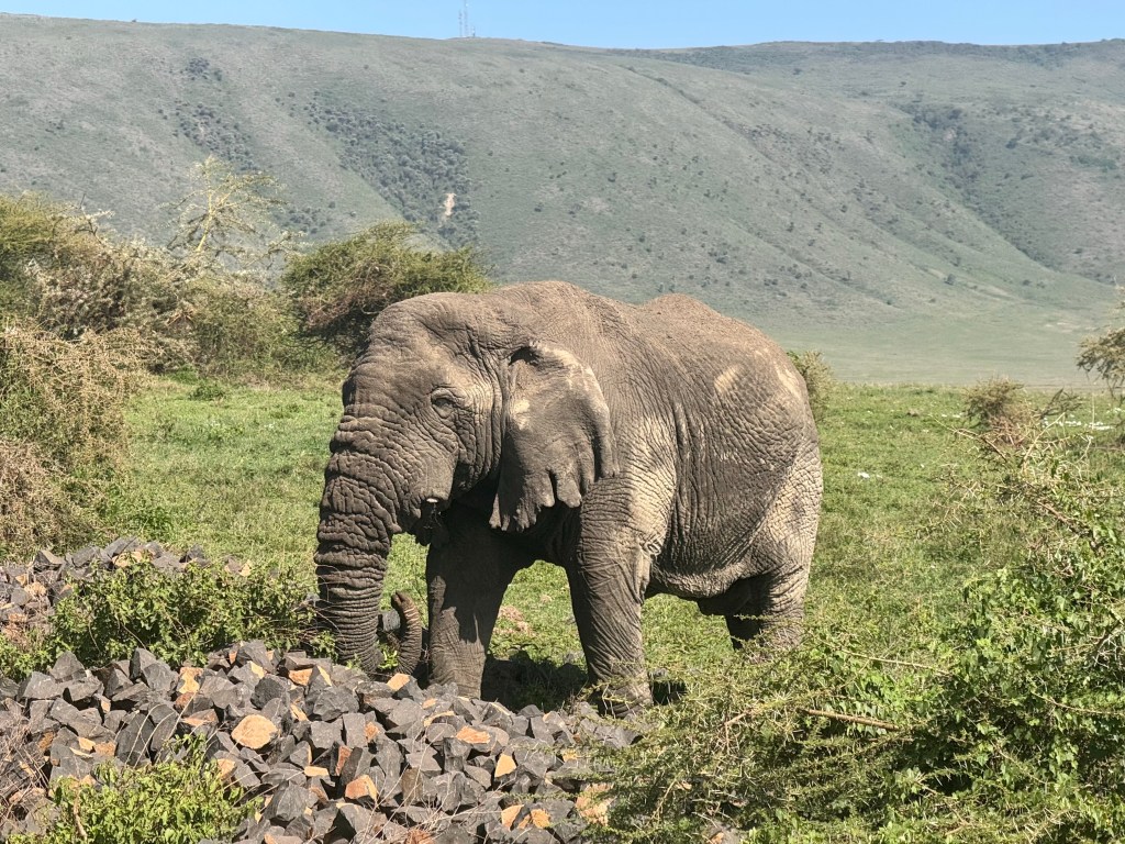 Our first encounter as we dropped down into the crater was this old elephant, likely 40-50 years old.