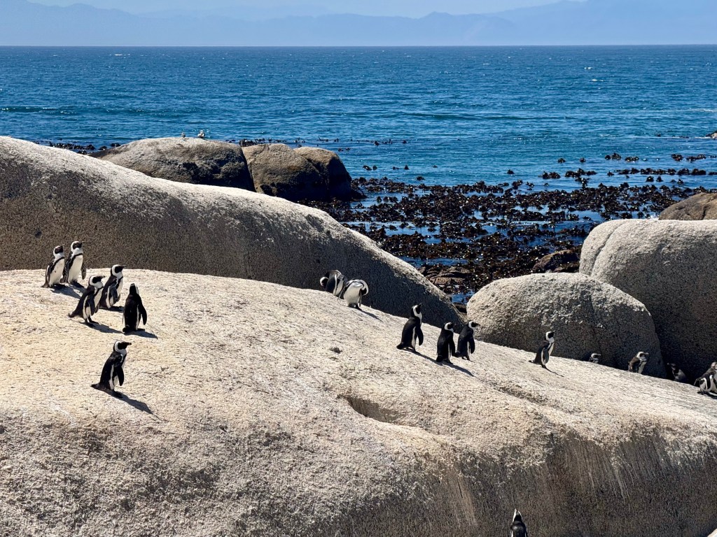 They are great to watch, waddling across the boulders timing their leaps back into the see or warming themselves in the sunshine.