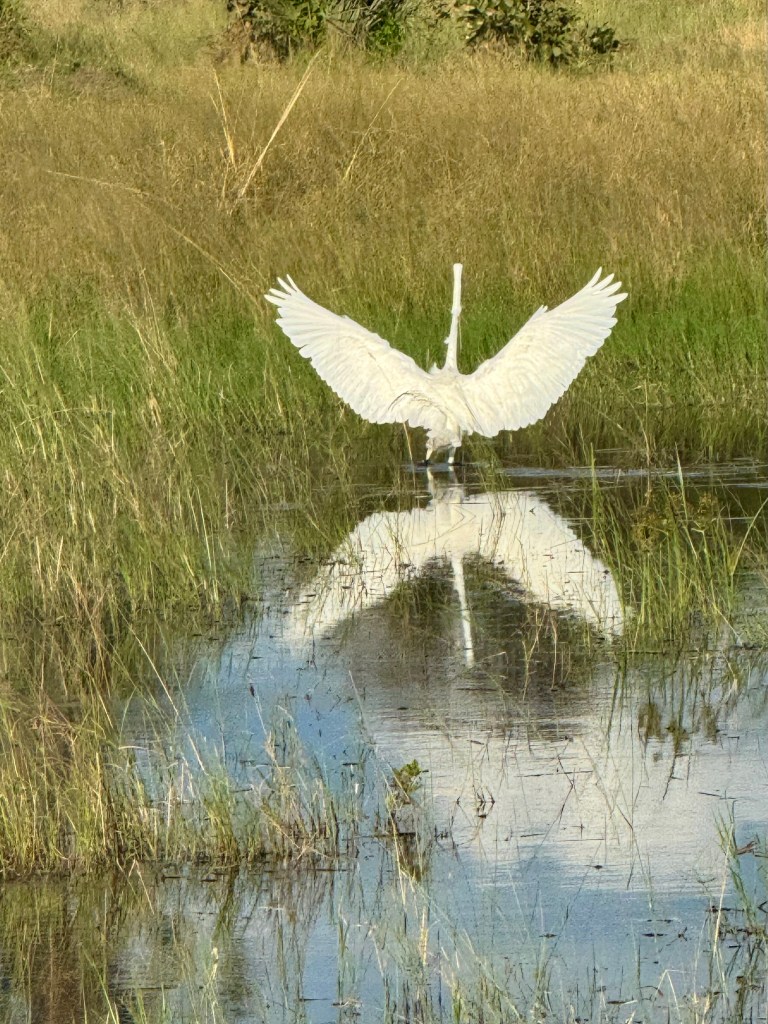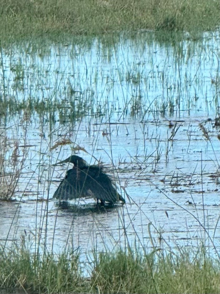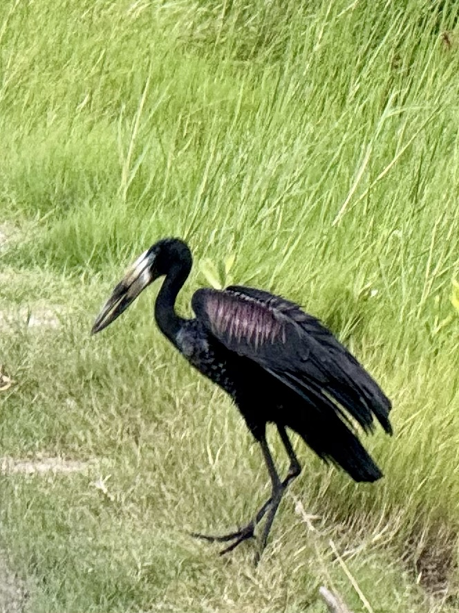 Below is a Black Heron, it feeds on fish by creating an umbrella with its wings and wiggling it’s yellow feet to draw in its prey.