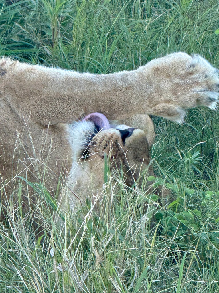 We watched her approach and then settle down in a shady area where she started to groom herself.