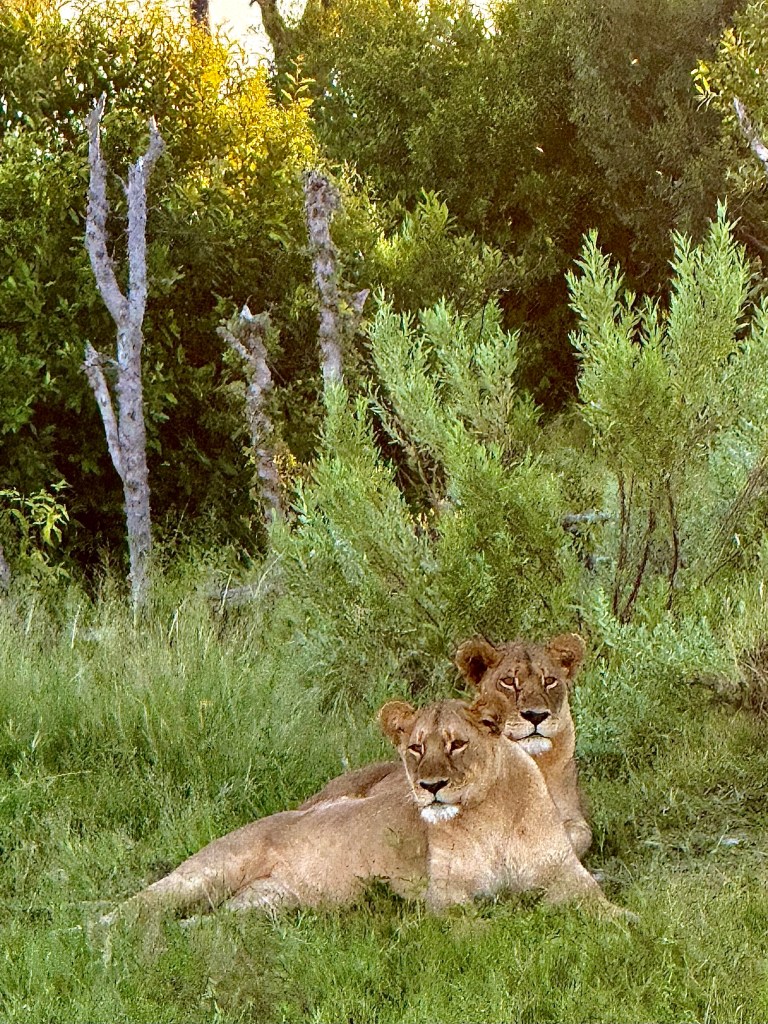 We stopped and watched her, she let out a few low growls. Our guide thought she might be calling her cubs. However, shortly after, another lioness joined her.
