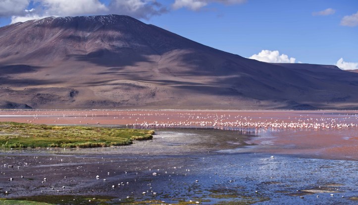 Our three day trip across the altiplano had so much more to give as we headed up into the mountains, through the national park seeing coloured lagoons, thousands of flamingos and so many snow capped mountains and volcanoes, reaching an altitude of 4,000 meters able sea level.